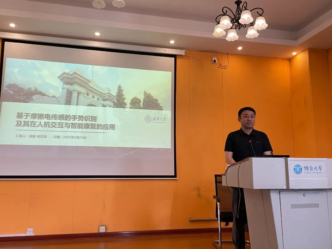 程嘉研究員團隊成功設計并實現了具有摩擦電與慣性雙模態感知能力的智能手套(TI-Glove),以及多維觸覺傳感與執行一體化器件。該系統已實現遠程操控、虛擬現實交互、手勢識別等典型人機交互功能,同時面向感覺康復、運動能力評估及假肢手觸覺反饋等場景,開發了多種智能康復輔具。活動現場討論熱烈、氛圍融洽,程嘉研究員對師生們提出的問題一一進行了詳細解答。