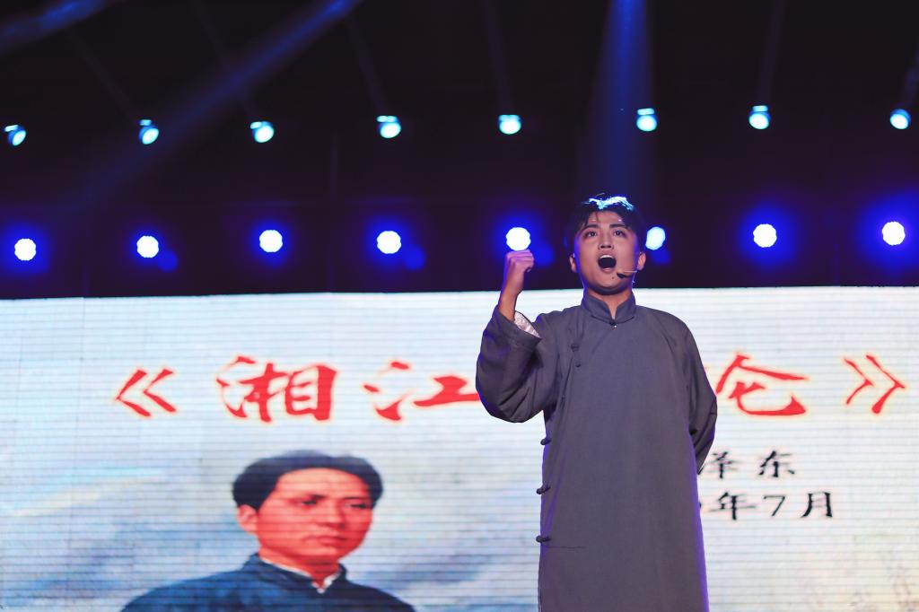 伴著充滿活力的《奔跑的青春》,整臺晚會拉開帷幕。朝氣蓬勃、青春洋溢的青年學子在舞臺上鋪陳開一幅繽紛的新時代青春畫卷。整場晚會分為“吶喊”“紅日”和“破浪”三個篇章,每一篇章以情景講述開啟,涵蓋歌曲、舞蹈、朗誦、器樂演奏等多種表演形式,內容豐富、精彩紛呈,體育場內掌聲和歡呼聲交相呼應。