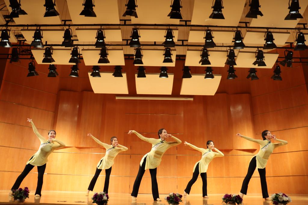 九曲黃河,奔騰向前,四部合唱《黃水謠》描寫了奔流不息的黃河之水,描繪著人們在美麗肥沃的土地上辛勤耕耘的景象。獨唱《雪白的鴿子》,舞蹈《馬爾康的姑娘》《反彈伎樂天》,展現了青海、寧夏、甘肅等地的獨特藝術表現形式,共同映照出中華民族自強不息、奮斗不止的品格。西洋管弦五重奏《游擊隊歌》,熟悉的旋律響起,描繪了機智勇敢的游擊隊員的藝術形象,表達了堅韌不屈的民族精神。嗩吶《天府好》、歌舞《沂蒙頌》充分挖掘黃河特色,生動演繹黃河故事,每一個作品傳遞的信念和精神,在音樂聲中娓娓道來,深深感染著現場師生。演出在歌曲《國家》中落下帷幕。