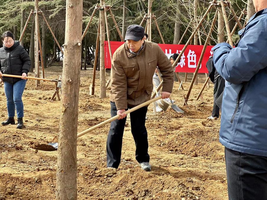 春意盎然、草木蔓發(fā),植樹現(xiàn)場(chǎng)一派熱火朝天的勞動(dòng)景象。大家挽起袖子、揮鍬鏟土、填坑夯苗、提水澆灌,干勁十足。植樹現(xiàn)場(chǎng),忙碌的身影構(gòu)成了一道道靚麗的風(fēng)景線,樹苗在春風(fēng)的吹拂下躍動(dòng)著生命的節(jié)奏。新種下的百余棵中山杉樹錯(cuò)落有致、迎風(fēng)挺立,充滿著勃勃生機(jī)。