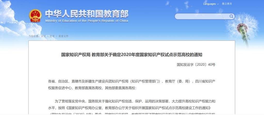 近日,國家知識產權局和教育部公布了2020年度國家知識產權示范試點高校名單,認定北京大學等30所高校為2020年度國家知識產權示范高校、遴選中國人民大學等80所高校為2020年度國家知識產權試點高校。其中,煙臺大學入列試點高校,試點工作有效期為2020年10月至2023年10月。