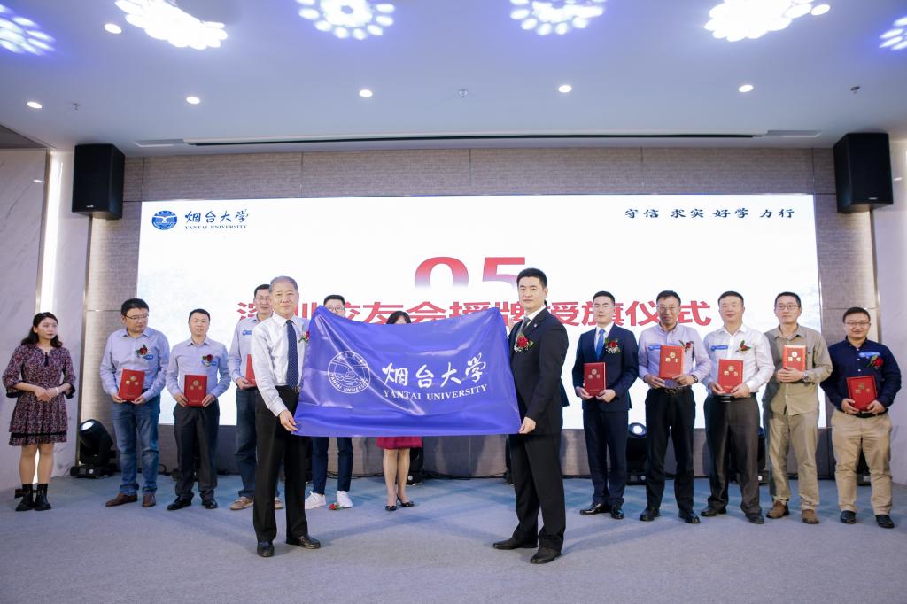 在全場煙大人的齊聲倒數中,張偉宣布煙臺大學深圳校友會正式成立,為深圳校友會常務理事頒發聘書,并為深圳校友會授牌,宋中民為深圳校友會授旗,將成立大會氛圍推向高潮。